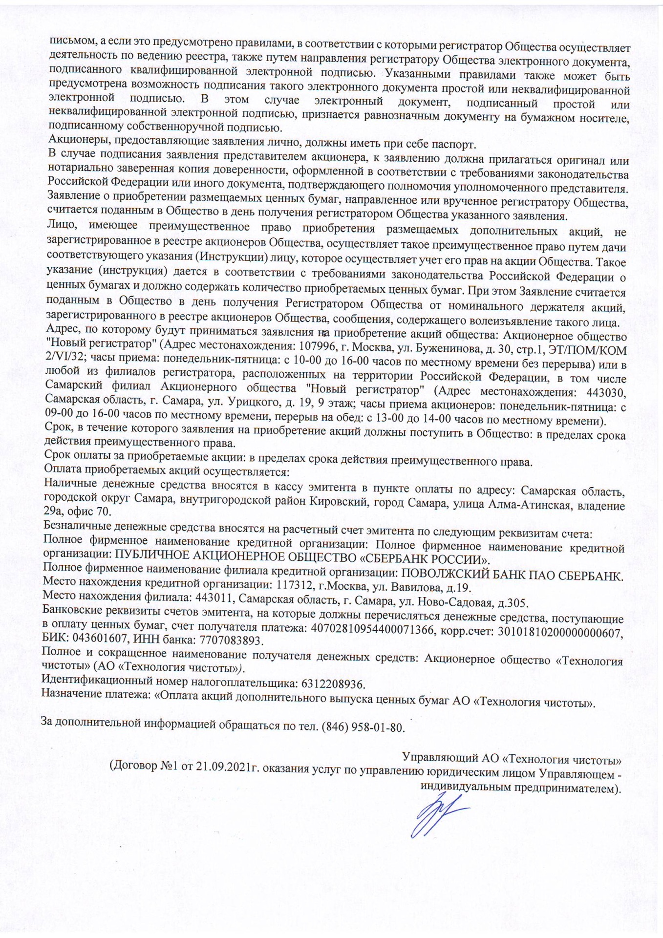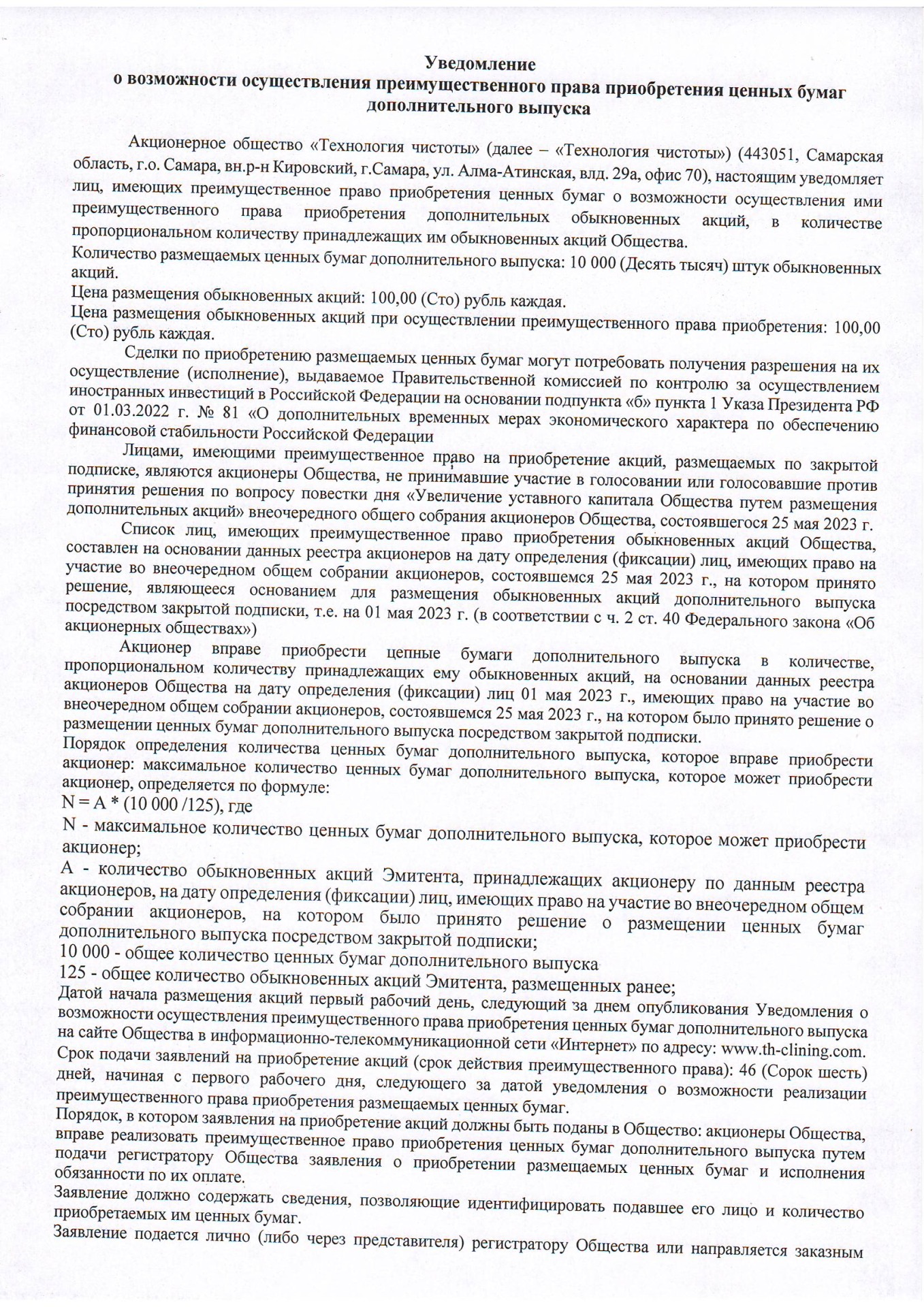 Уведомление о возможности осуществления преимущественного права приобретения ценных бумаг дополнительного выпуска